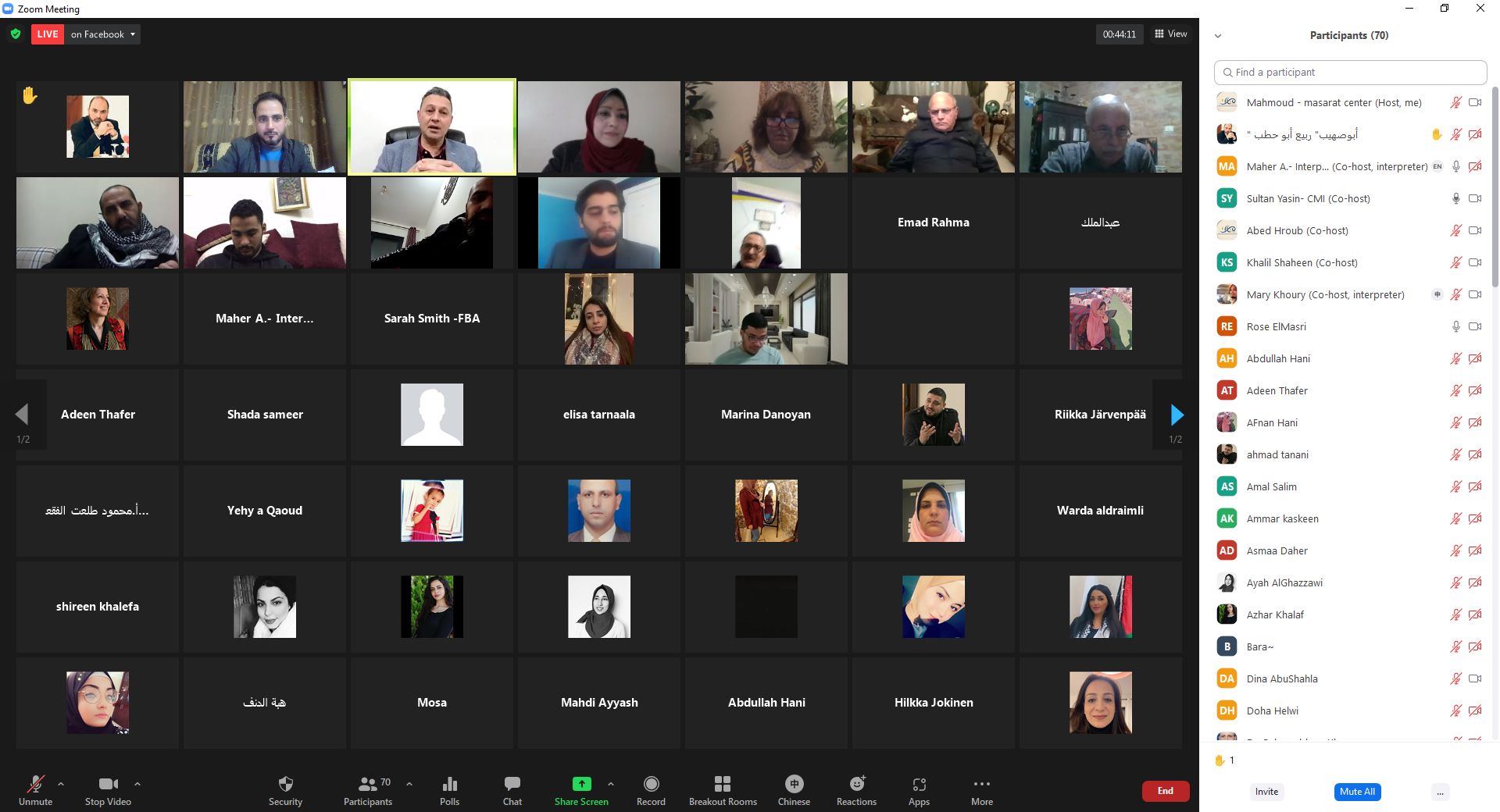 All this came during a dialogue session organized by the Palestinian Center for Policy Research and Strategic Studies (Masarat) in cooperation with the Martti Ahtisaari Peace Foundation (CMI), on reconciliation dialogues , youth and women’s participation. The session was attended by about a hundred researchers, activists, representatives of youth and women’s organizations, representatives of Civil Society organizations, in addition to representatives of the Martti Ahtisaari Peace Foundation and a number of international organizations.