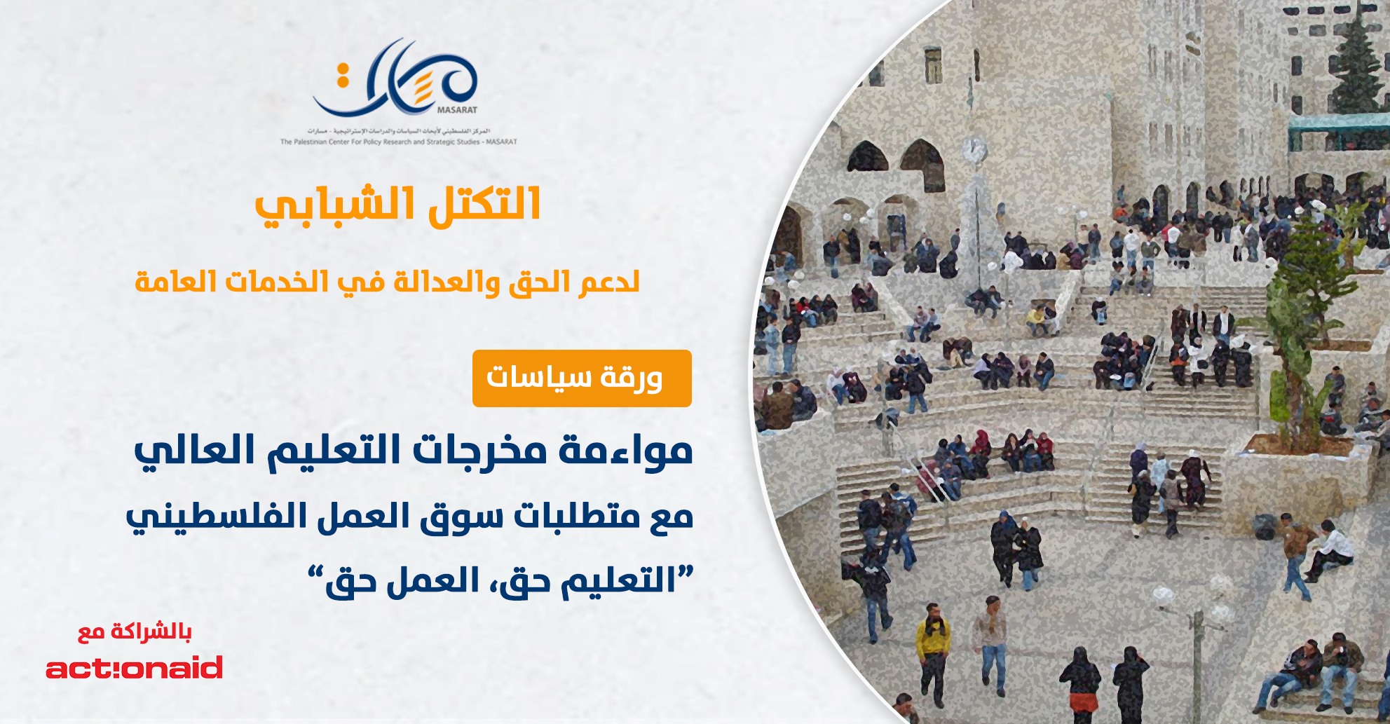 هذه الورقة من إصدار أعضاء التكتل الشبابي لدعم الحق والعدالة في الخدمات العامة، إيناس اخلاوي - الخليل، مهند شعث – قطاع غزة، القاسم عفانة – قطاع غزة، أزهار عبيد - قطاع غزة، إشراف: د. عماد أبو رحمة، ضمن إطار برنامج الشراكة الإستراتيجية بين مركز مسارات ومؤسسة أكشن إيد - فلسطين.