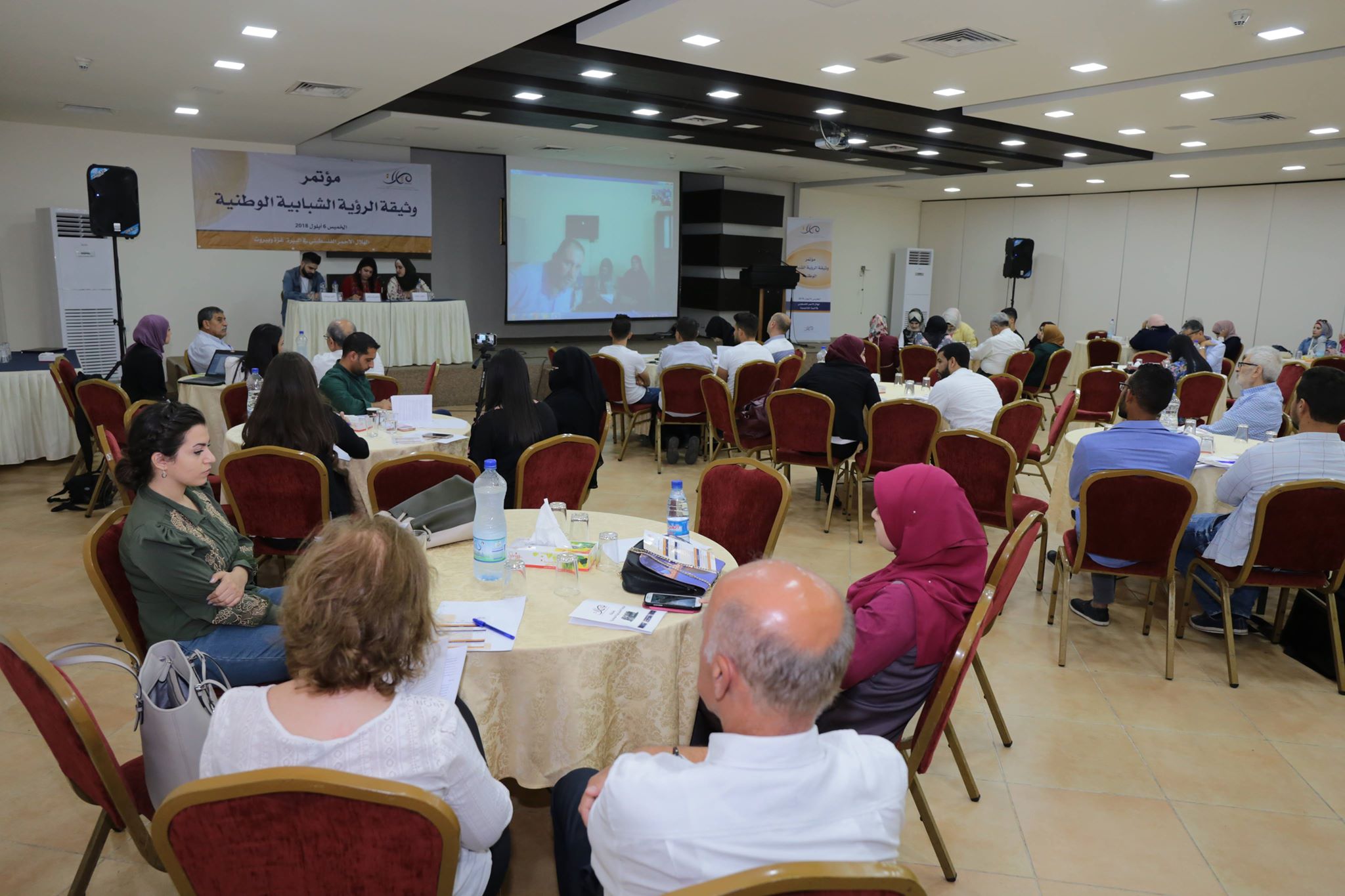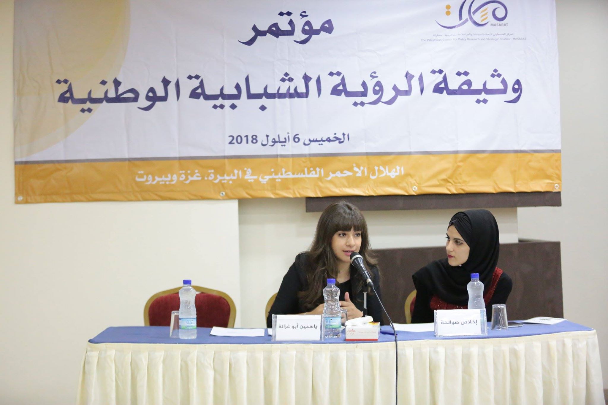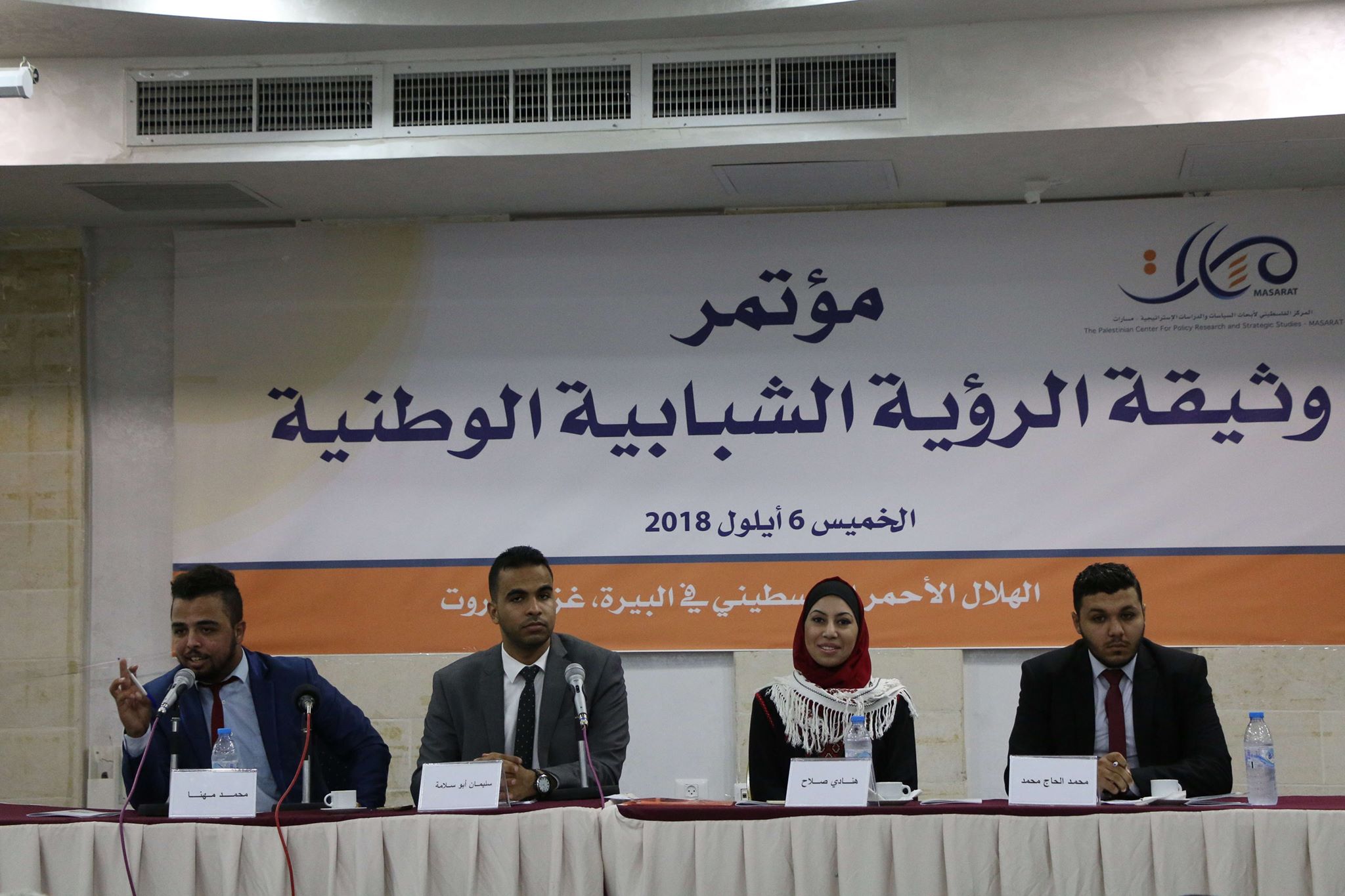 جاء ذلك خلال مؤتمر حاشد نظمه المركز الفلسطيني لأبحاث السياسات والدراسات الإستراتيجية (مسارات) في قاعات الهلال الأحمر الفلسطيني في البيرة وغزة عبر "الفيديو كونفرنس"، وعبر سكايب مع بيروت، بحضور أكثر من 500 شابة وشابة من مختلف مناطق الضفة الغربية وقطاع غزة ومخيمات لبنان، لمناقشة مسودة "وثيقة الرؤية الشبابية" التي أنتجت في إطار برنامج "الشباب يريد" الذي نفذه مسارات خلال الفترة من تموز 2017 – آب 2018.