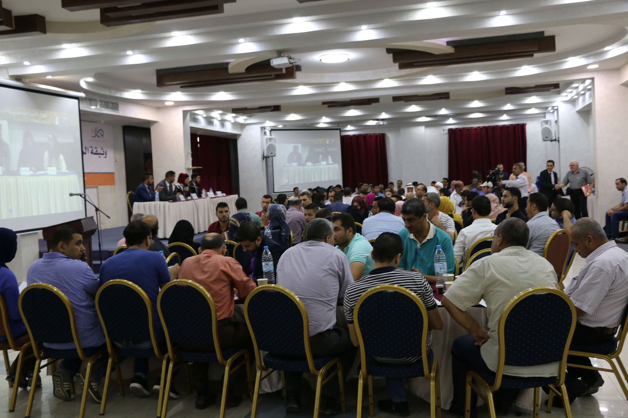 في الجلسة الأولى التي أدارها كل من: سالي أبو عياش، وسليمان أبو سلامة، عرض أعضاء السكرتاريا الوثيقة، إذ عرض هيثم عبده المحور السياسي والوطني، وأنس دويكات المحور الاقتصادي، ومحمد مهنا المحور الاجتماعي والثقافي، وهنادي صلاح محور التشريعات والقوانين، ونجوى عدنان المحور الإعلامي، ومحمد الحاج عرض دور الشباب في مواجهة التحديات.