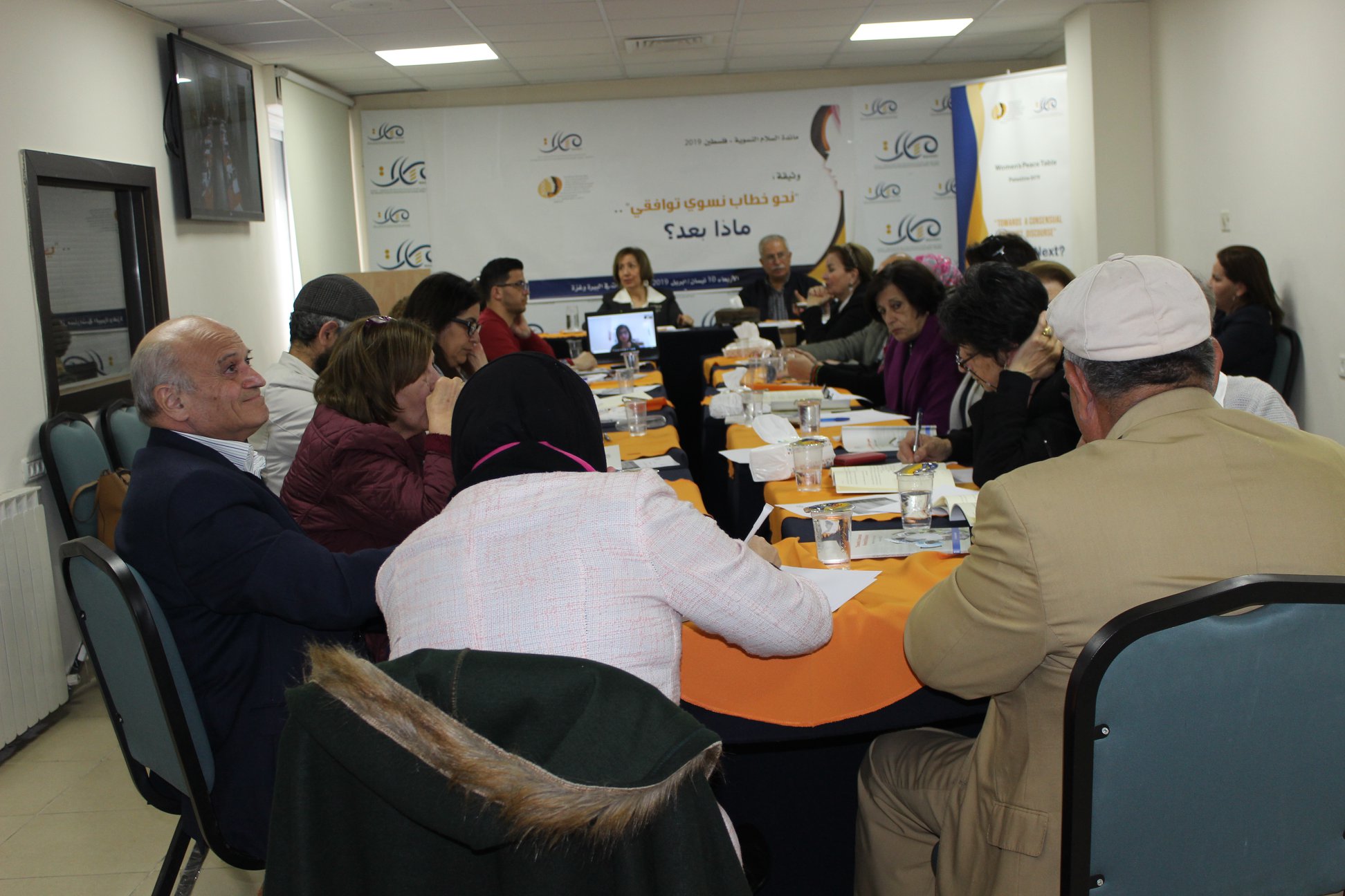 جاء ذلك خلال مائدة السلام النسوية (2018-2019)، التي نظمها المركز الفلسطيني لأبحاث السياسات والدراسات الإستراتيجية (مسارات) بالتعاون مع منظمة "نساء من أجل السلام عبر العالم، في مقريه في البيرة وغزة، يوم 10 نيسان، بحضور العشرات من النسويات القياديات الممثلات لعدد من الأحزاب ومؤسسات المجتمع المدني والرجال والشباب، لمناقشة المرحلة التالية لإقرار وثيقة "نحو خطاب نسوي توافقي".
