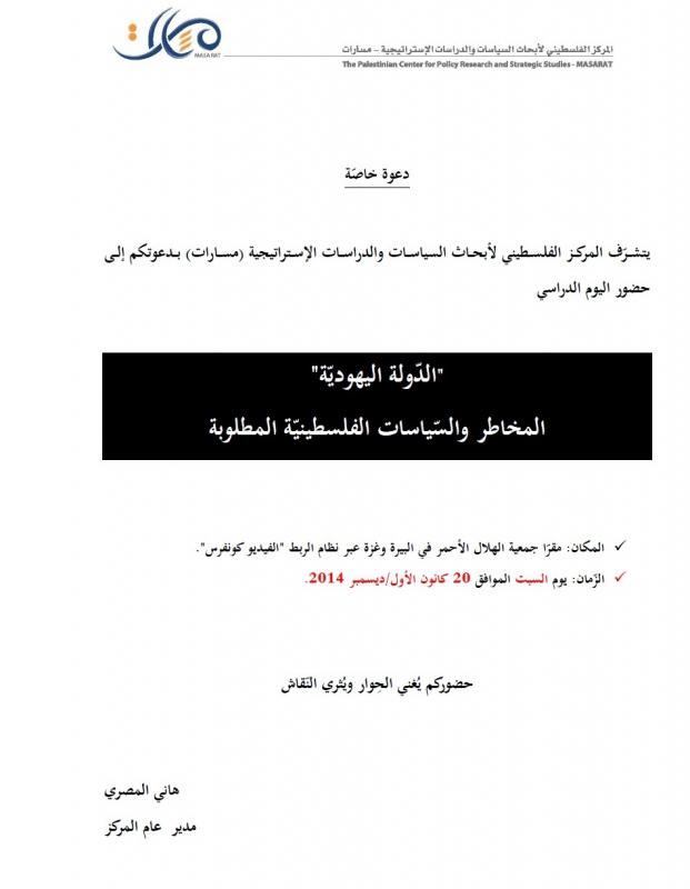 يوم دراسي: "الدّولة اليهوديّة" .. المخاطر والسّياسات الفلسطينيّة المطلوبة